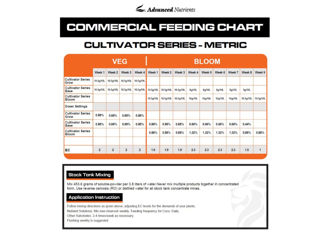 Cultivator Series je profesionalna osnovna prehrana v obliki prahu, ki vsebuje samo najkakovostnejše elemente v skrbno uravnoteženih razmerjih, ki maksimalno podpirajo vse pomembne procese skozi razvoj rastlin. Nova tehnologija ponuja nizke stroške, enostavnost uporabe, izkoriščanje največjega genskega potenciala vaših rastlin in končni izdelek vrhunske kakovosti.