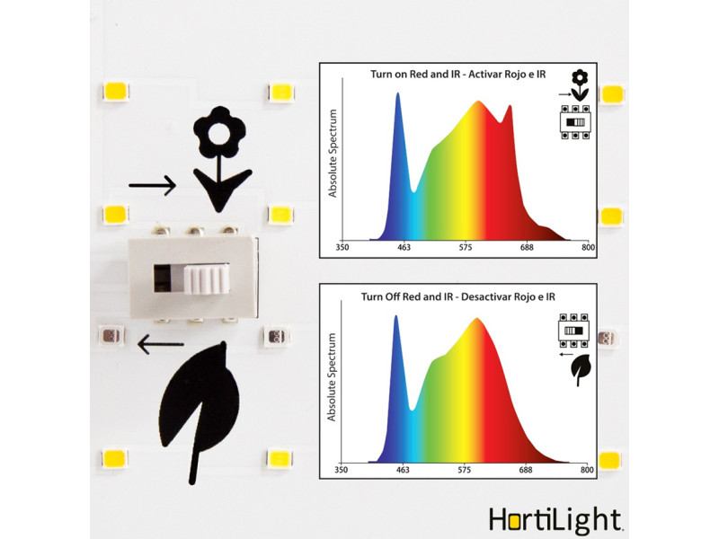 Z dual spectrum tehnologijo preklapljaš med vegetacijo in cvetenjem, tako da rastline dobijo točno tisto svetlobo, ki jo rabijo v pravem trenutku.