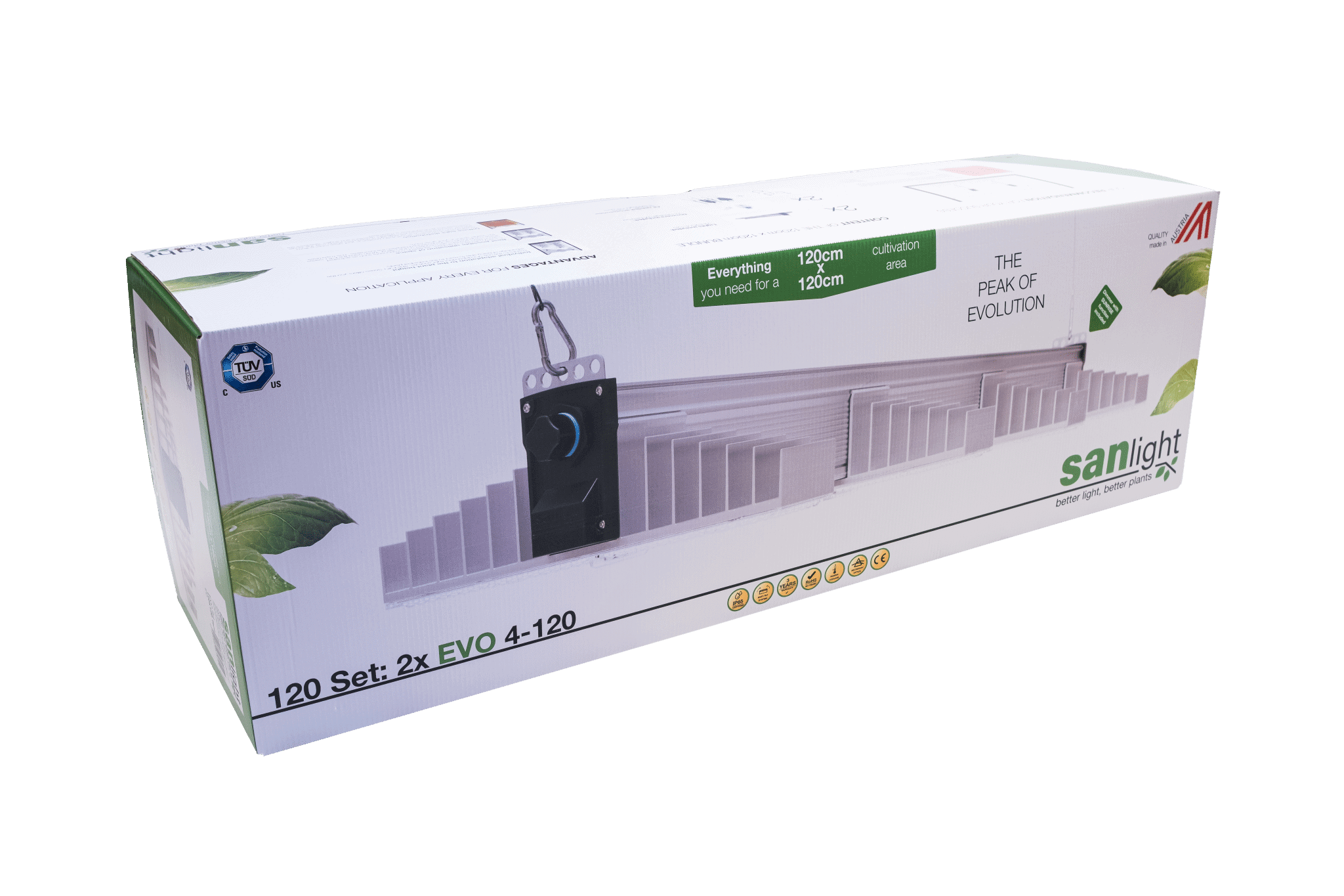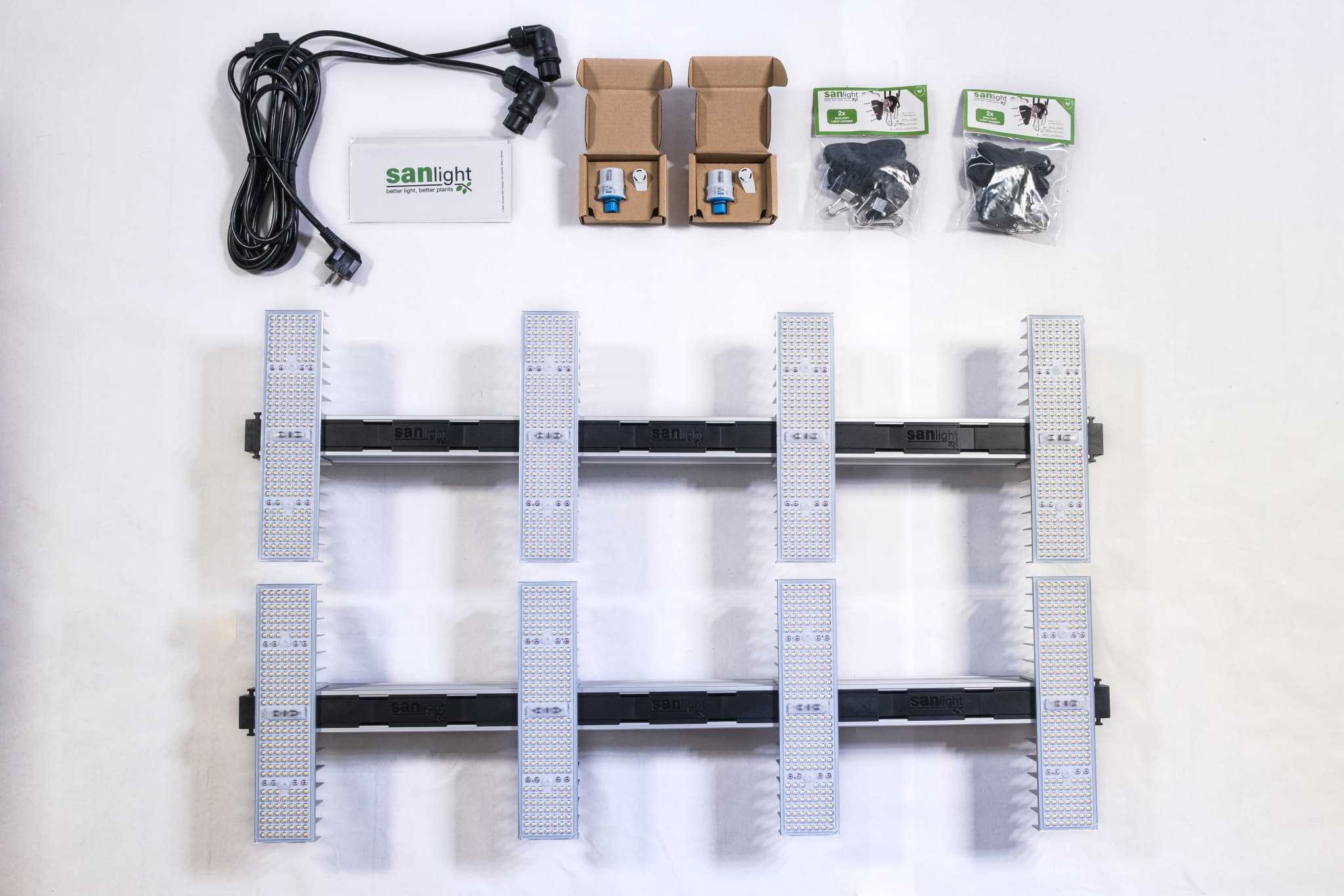 Set SANlight 120 vključuje vse, kar potrebujete za gojenje na površini 120 cm x 120 cm.