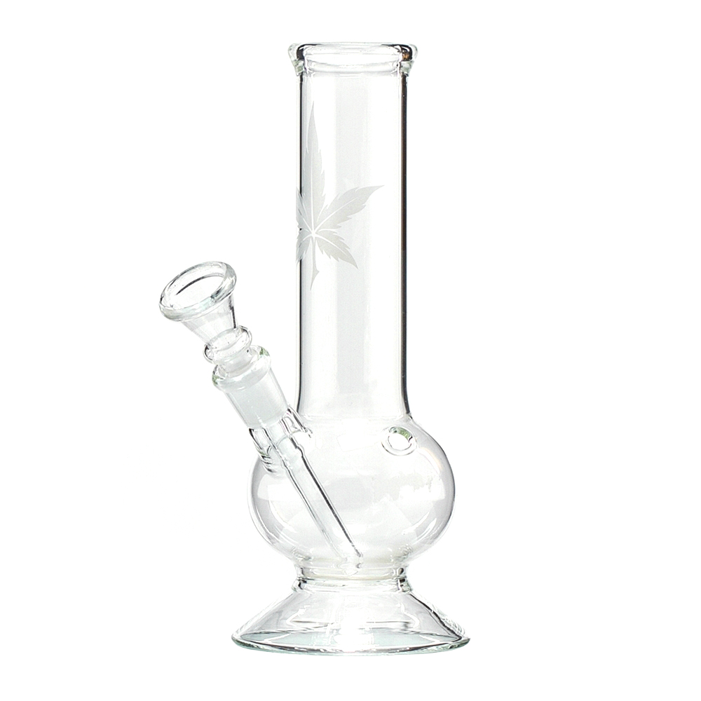 Glass Bong Leaf Frosted je kompakten stekleni bong s čistim, elegantnim videzom, kjer glavno vlogo igra peskan (matiran) motiv lista konoplje, vdelan neposredno v steklo. Motiv ni natisnjen, temveč trajno matiran, kar bongu daje diskreten, premium videz in prijeten občutek v roki.